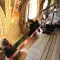 Povrch stěny s okny, která je při vstupu do sálu vpravo od dveří, má plochu přibližně 130 metrů čtverečních, opět se tedy jedná o velmi rozsáhlou plochu, souvisle pokrytou freskovou výmalbou. „V současné době už je povrch velmi citlivých klihových a temperových maleb očištěný od dlouhodobě ulpělých nečistot, přemaleb a lokálních retuší,“ popsal aktuální stav prací vedoucí restaurátorského týmu Radomír Surma. Přemalby a retuše bylo nutné odstranit proto, že byly dělány na znečištěný povrch a proto po očištění celé plochy byla tato místa výrazně tmavší. „Dále provádíme injektáž, hloubkové zpevnění zdiva a omítek a povrchové zpevnění maleb k vápennému podkladu,“ dodal restaurátor. Současně už začalo zatmelování defektů vápenným tmelem a poté jemným štukovým tmelem. Práce by měly být hotovy do konce listopadu. Náklady na pátou etapu restaurátorských prací činí 1,54 milionu korun, městu se podařilo získat dotaci z rozpočtu ministerstva kultury ve výši 1 milion korun.